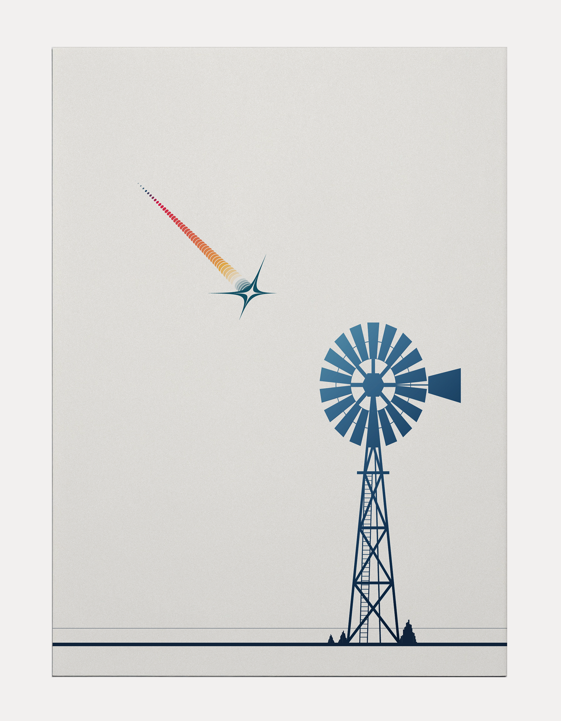 The narrative moves back to earth, where the catalyst lands. Hakea's Embrace portrays a stylised, dark silhouette of the Native Australian Hakea Tree, a hardy plant symbolic of resilience and the unique beauty of Australia. The tree's branches gently lay the Phoenix Egg on the ground - radiating a warm, intense glow from behind the trunk. This is the moment of fertile grounding: the idea for the new career has taken root in a familiar and powerful landscape, drawing on the strength and identity of its Australian roots. The rebirth of the phoenix is about to commence.