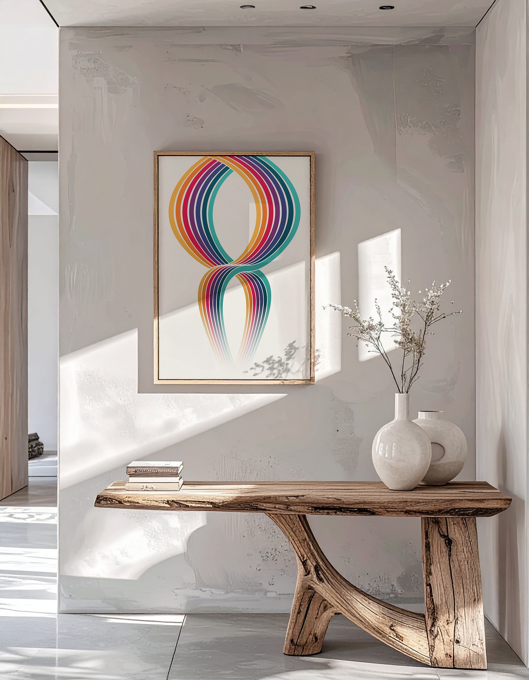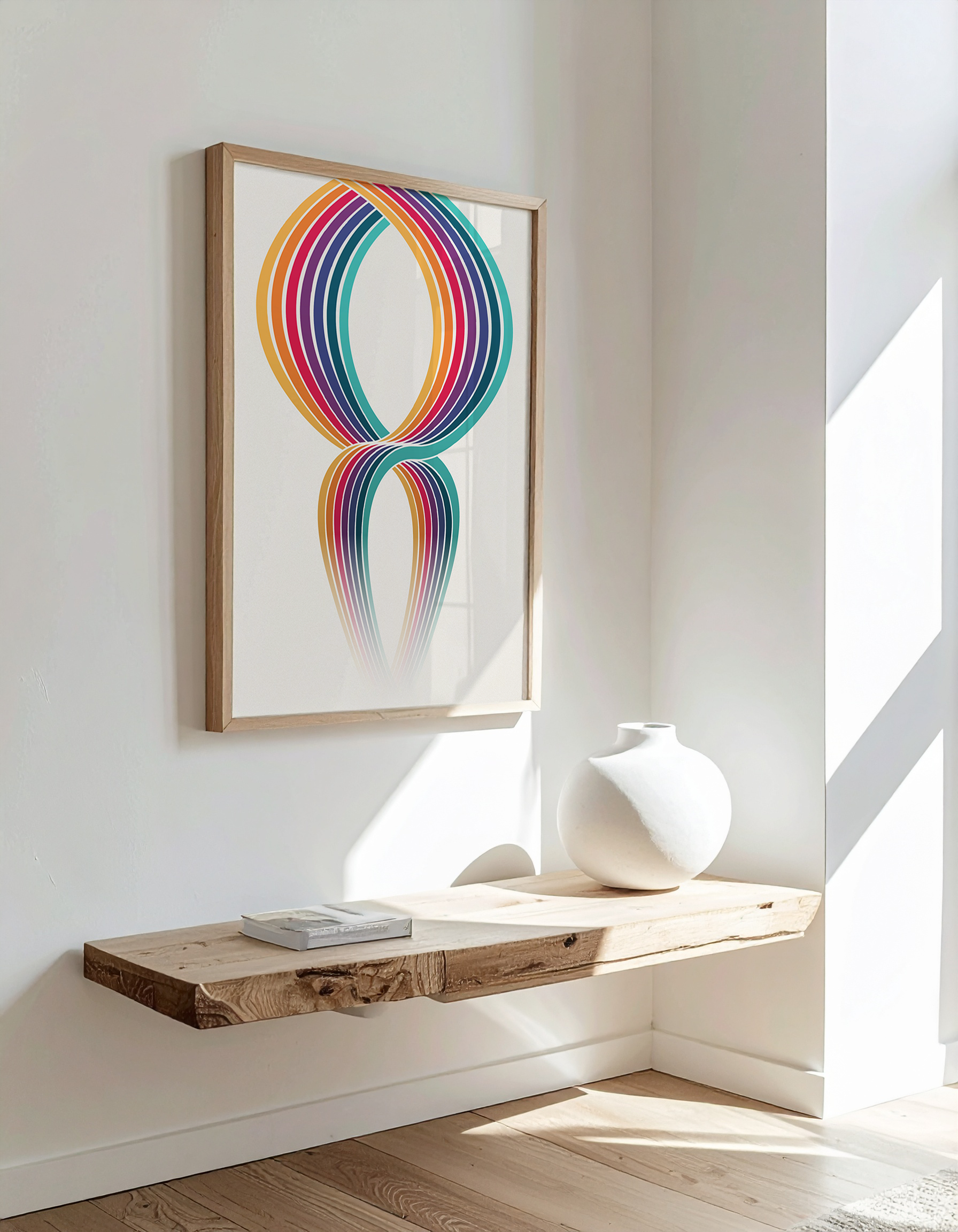 Following the explosion, the journey upward begins. Trailblazer captures the essence of the Phoenix's rise, with a cascading ribbon of brilliant, energetic lines weaving into an infinite loop. This design represents the vibrant, continuous trail of fire left by the emerging bird, symbolising the initial, dizzying rush of energy and creativity that accompanies a significant life change. The colours are a visual metaphor for the excitement and sheer possibility of the new path, ascending from the past and spiralling toward a glorious future.