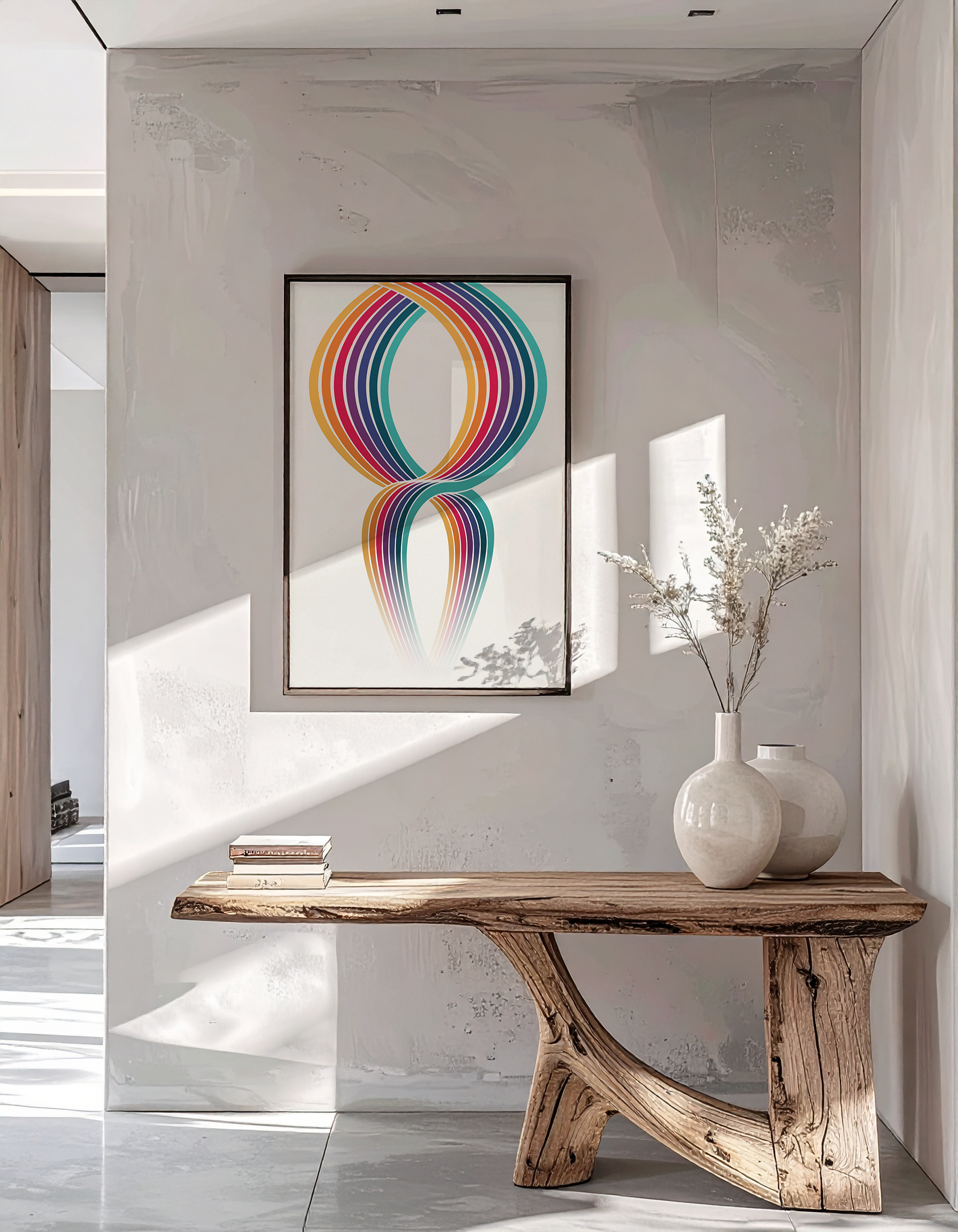 Following the explosion, the journey upward begins. Trailblazer captures the essence of the Phoenix's rise, with a cascading ribbon of brilliant, energetic lines weaving into an infinite loop. This design represents the vibrant, continuous trail of fire left by the emerging bird, symbolising the initial, dizzying rush of energy and creativity that accompanies a significant life change. The colours are a visual metaphor for the excitement and sheer possibility of the new path, ascending from the past and spiralling toward a glorious future.